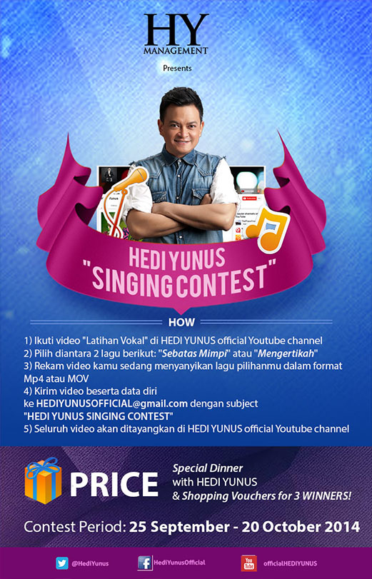 Sering saya ditanya, apa sih resepnya untuk jaga suara? Dan sejujurnya, saya kadang bingung mau jawab apa. Rasanya gak punya resep atau jurus atau pantangan-pantangan khusus. Malahan sebelum naik panggung untuk nyanyi, saya sering kok makan gorengan + minumnya air dingin pula (jangan ditiru yaaaaa). Tapi spesial hanya di hediyunus.com, saya akan coba jawab ya. Tidak sekali dua kali saya harus manggung dalam kondisi sakit (biasanya flu atau radang tenggorokan) tapi Alhamdulillah tetap bisa berjalan lancar. Kok bisa? Proses belajar diawal karir dulu sangat membantu saya. Lalu pengalaman juga mengajarkan untuk mampu mengantisipasi segala kondisi. Nah selebihnya, sekarang ini saya tinggal menjalankan semua pekerjaan, termasuk nyanyi, dengan sepenuh hati dan rasa cinta. Itu kuncinya.